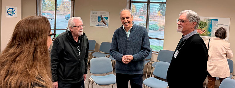 Sri Doug Kunin chatting with visiting religious studies scholars.